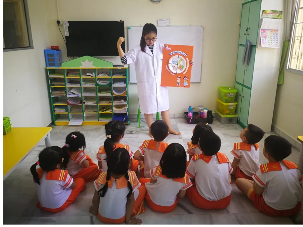 o 使用三语绘本(英文、马来文、中文)融入健康理念。
